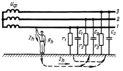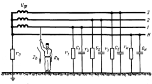 Чем лучше изоляция проводов относительно земли, тем меньше опасность однофазного прикосновения к проводу.
