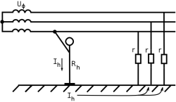- ток, стекающий в землю при коротком замыкании фазного проводника на корпус оборудования,
