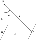Условная освещенность – это освещенность, создаваемая световым потоком (при многоламповых светильниках - суммарный поток ламп) равным в каждом светильнике 1000 лм. Величина условной освещенности зависит от светораспределения светильника и геометрических размеров $d$ и $h$ (см. рисунок).