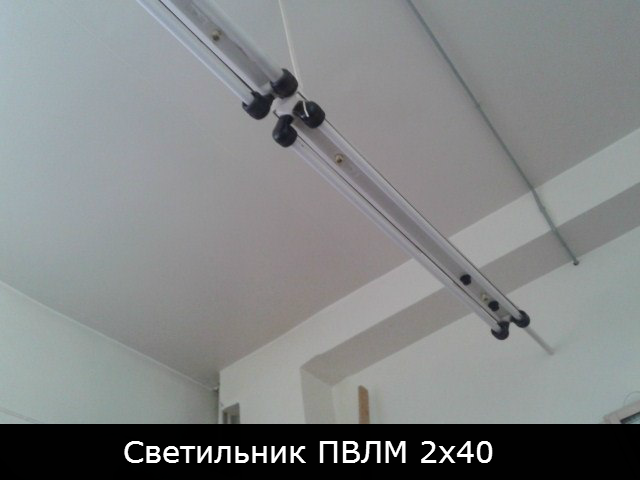 Для освещения помещения используются подвесные светильники ПВЛМ-2, расположенные на высоте $3,5 \text{ м}$ над рабочей поверхностью.